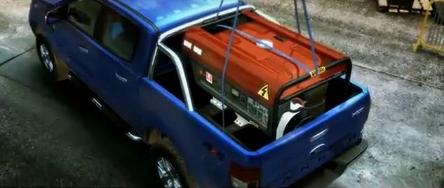 A Ford faz questão de enfatizar a robustes da pick-up mostrando no vídeo que ela carroga um pesadíssimo gerador, passando por estrada de terra, por rio, enfrentando água, subidas, tudo sem amarelar, ou seja, seu conjunto foi projetado para dar o melhor de si.